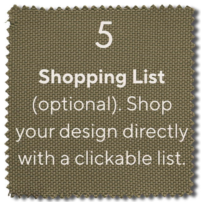 A curated, shop-ready list of the exact products used in the design — from furniture and lighting to decorative accessories.